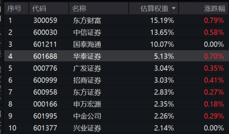 证券ETF龙头(560090)标的指数成分股方面涨跌互现,国盛金控(002670)领涨4.79%,长城证券(002939)上涨2.65%,华林证券(002945)上涨1.41%;东方财富、中信证券、华泰证券等均跟涨。